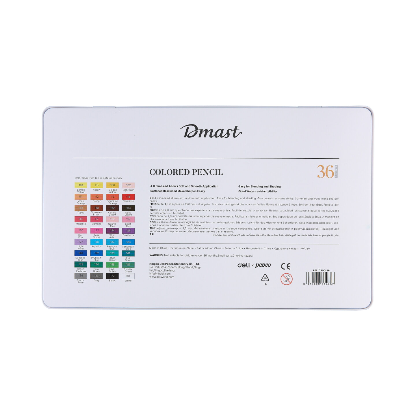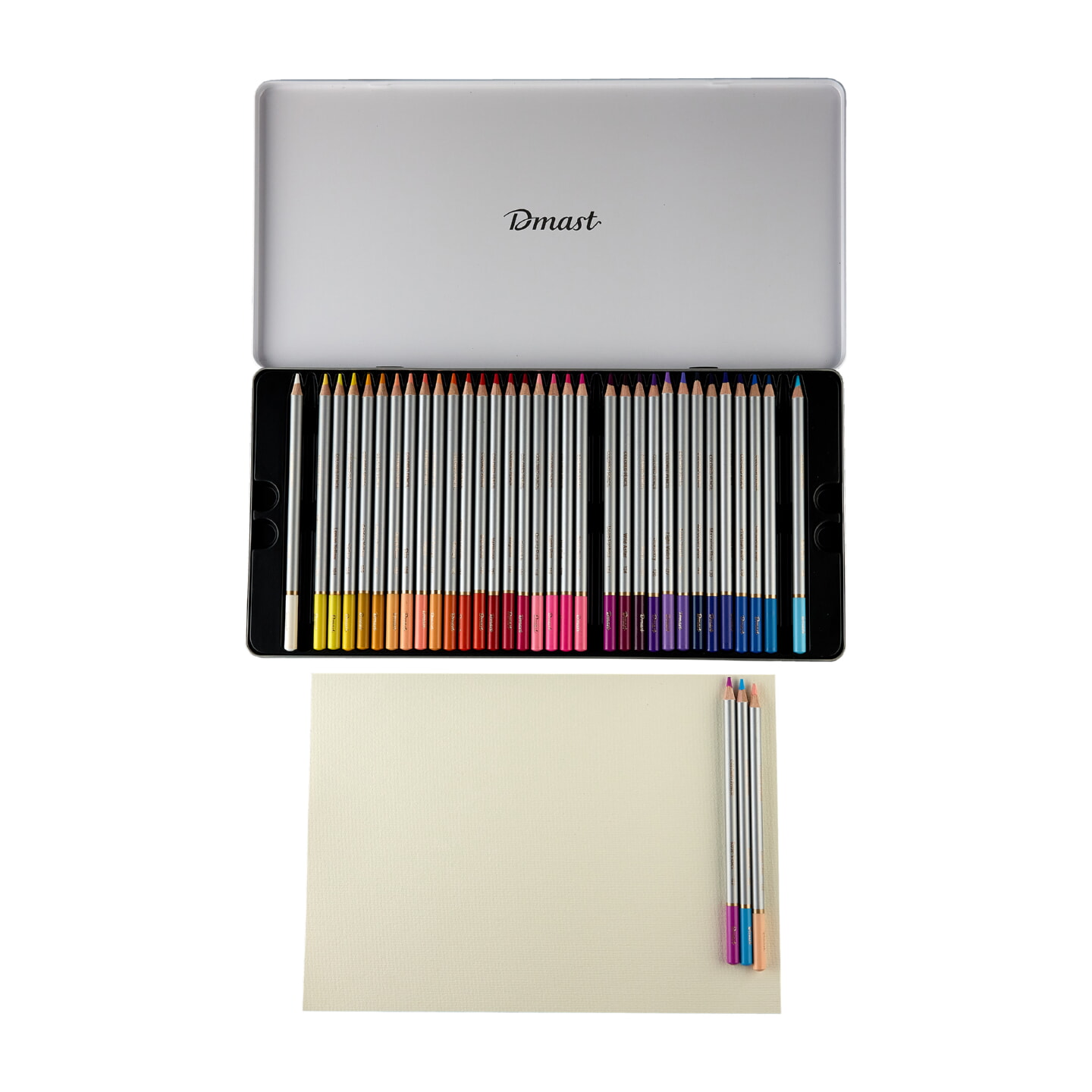 Цветные карандаши Dmast произведены из высококачественных светостойких пигментов. Текстура грифеля обеспечивает мягкое нанесение на бумагу, но при этом долго сохраняет остроту заточки. Цвета отлично смешиваются и наслаиваются. Карандаши Dmast подходят для жанров, требующих использование многослойных техник. Корпус из липы гарантирует лёгкую заточку. Наборы поставляются в фирменных металлических пеналах и послужат отличным подарком художнику любого уровня мастерства.