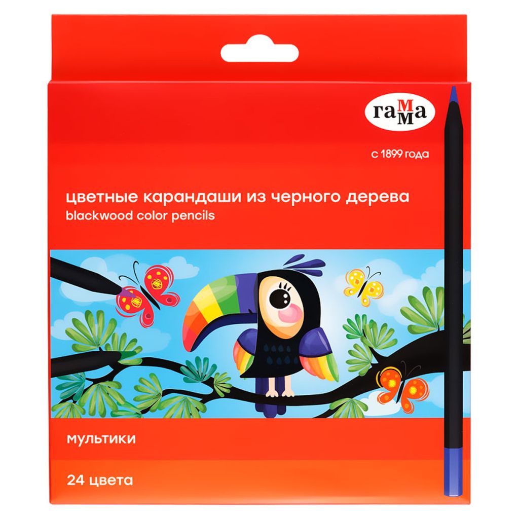 Цветные карандаши «ГАММА» серии «Мультики» выполнены в стильном шестигранном корпусе из высококачественной древесины чёрного цвета. В наборе 24 цвета. Диаметр грифеля — 2,9 мм. Проклеенный ударопрочный грифель не крошится во время заточки и не ломается даже после падения. Корпус карандаша диаметром 7 мм и длиной 174 мм изготовлен из дерева. Специальная обработка древесины позволяет легко заточить карандаш без зазубрин и заноз. За яркость и высокую укрывистость отвечают качественные пигменты в составе. Ребенку не придется сильно давить на карандаш — рисунок получится ярким и равномерно закрашенным.