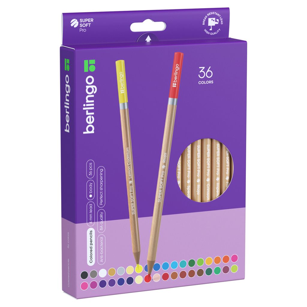 SuperSoft. Pro — премиальная линейка цветных карандашей Berlingo высшего качества. В подарок в каждой упаковке карта цветов на художественной бумаге для тестовых выкрасов и теста смешиваемости. Грифели высочайшего стандарта качества 8А, являющегося максимальным для нехудожественных цветных карандашей. Мягкость письма, сравнимая с рисованием маслом и пастелью. Яркие насыщенные цвета, обладающие превосходной смешиваемостью. Увеличенная до 4 мм толщина грифеля для безупречно комфортного раскрашивания. Уникальная формула и технология производства грифелей, в результате которой достигается одновременно удивительная мягкость письма и прочность, позволяющая грифелю выдерживать даже сильное нажатие под углом 45 градусов. Специальная проклейка, предотвращающая поломку грифеля внутри карандаша при падении. Корпус круглой формы выполнен из древесины высшего качества, прошедшей тщательную обработку. Материал, сохраняющий свою прочность и легко поддающийся ровной заточке без усилий. Уникальная антибактериальная обработка на специализированном оборудовании, гарантирующая безопасное использование продукции детьми.