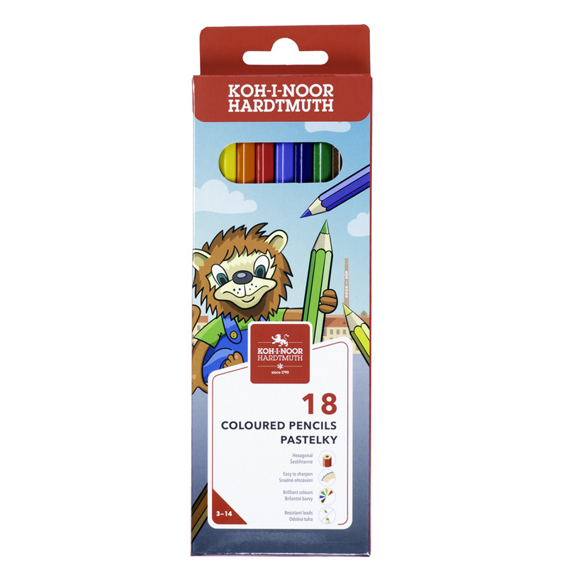 Цветные карандаши "Lion" KOH-I-NOOR предназначены для рисования на бумаге и картоне. Шестигранный корпус, изготовленный из дерева, удобно лежит в руке. Цвета - яркие и насыщенные. Толщина корпуса 7 мм, толщина грифеля 2,8 мм.