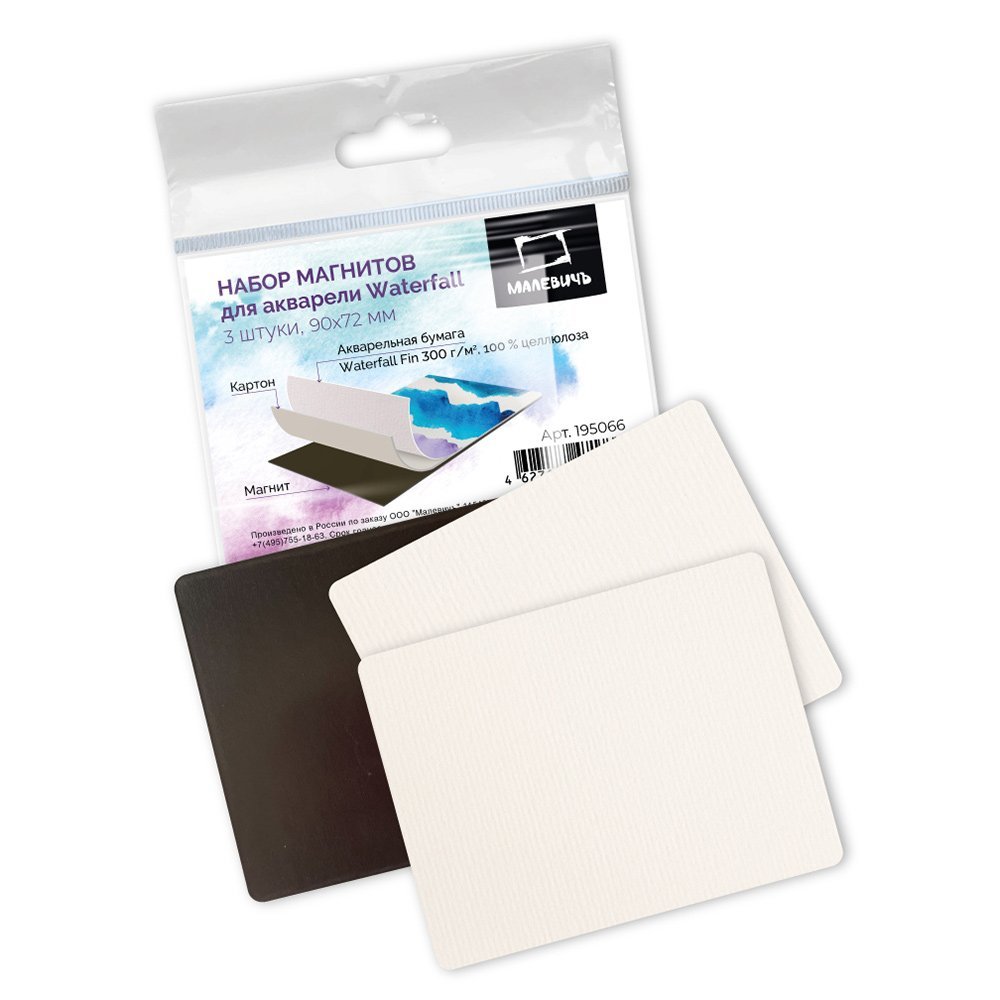 Акварельные магниты — это оригинальный материал для рисования акварелью. Магнит для акварели Малевичъ 100% целлюлозы WaterFall, плотность бумаги 300 гр/м2. Рабочий слой этого материала — бумага для акварели с фактурой fin на картонной подложке, а обратная сторона — магнит, который позволяет использовать готовую работу в качестве подарка или сувенира, или как вспомогательный материал, например, для создания выкрасок и размещения на магнитной доске. Подходят для работы в технике по-сырому и по-сухому акварельными и гуашевыми красками. Благодаря плотной склейке, акварельный магнит сохраняет форму под воздействием красок и воды без деформации.