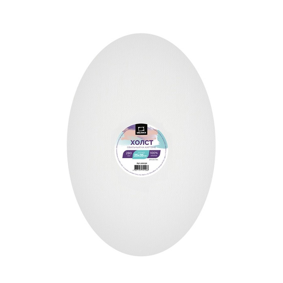 Холст на картоне "Малевичъ", выполненный в форме овала — это полностью готовый к работе идеально грунтованный холст, качественно натянутый на картон. Отличается привлекательным соотношением цены и качества. Холст сделан из натурального хлопка плотностью 280г/м2. Гладкая поверхность с мелкозернистой фактурой удобна для предварительных набросков. Холст равномерно натянут и наклеен на основу из очень прочного плотного картона толщиной 3мм. Холсты на картоне не занимают много места, надежно защищают живописный слой от повреждений, удобны при выездах на пленэр и на выставки. Их можно оформить в готовую раму, тогда как картины на подрамнике необходимо отдавать в мастерскую. Кроме того, холсты на картоне дешевле традиционных изделий на подрамнике, поэтому будут особенно интересны студентам творческих вузов и много пишущим профессионалам. Подходят для любого вида красок, кроме акварельных.