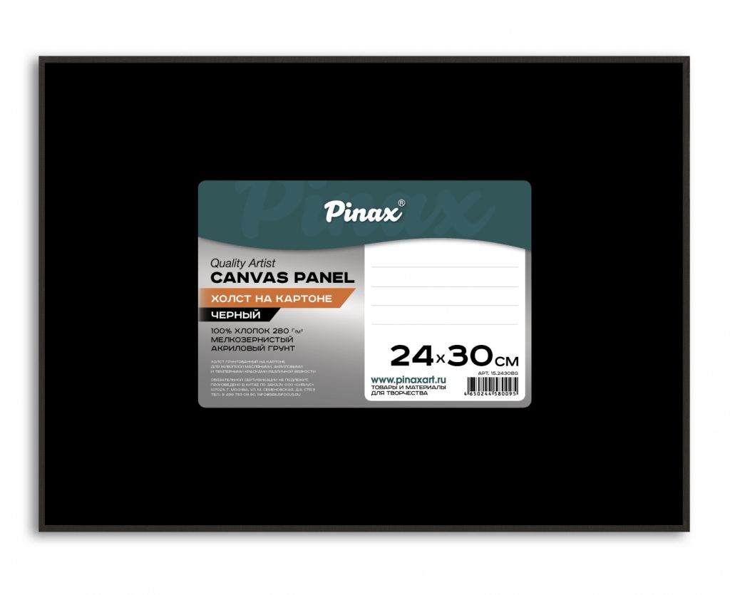 Холст на картоне — отличное решение для начинающих художников и любителей, а также незаменимый атрибут выезда на пленэр. На хлопковый холст наносится три слоя акрилового грунта, который обладает высокой степенью адгезии – обеспечивает хорошее сцепление краски с грунтованным холстом. Предназначены для масляной живописи, акрила, темперы и смешанных техник. Хлопок в качестве основы для холста — доступное и универсальное решение как для профессионалов, так и для начинающих художников. Черные холсты Pinax — это оригинальное решение в качестве основы для живописи. Насыщенный черный цвет обеспечивает глубину цвета, позволяя создавать яркие необычные работы.