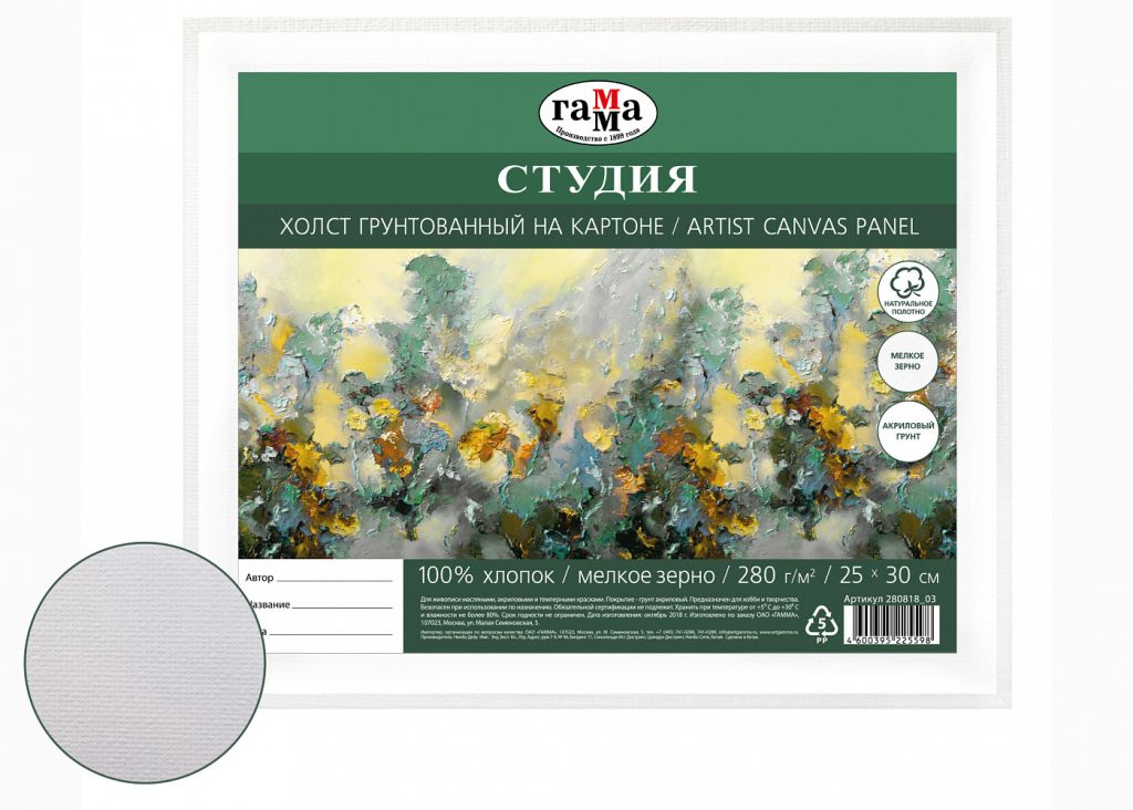 Холст выполнен из 100% хлопка, обладает мелкозернистой текстурой, что делает его универсальным для различных работ, от объёмных абстракций до детализированных композиций. Холст покрыт несколькими слоями грунта и полностью готов к работе. Плотность 280 гр/м2. Может использоваться для живописи масляными, акриловыми или темперными красками. Линейка представлена холстами на картоне в различных форматах.