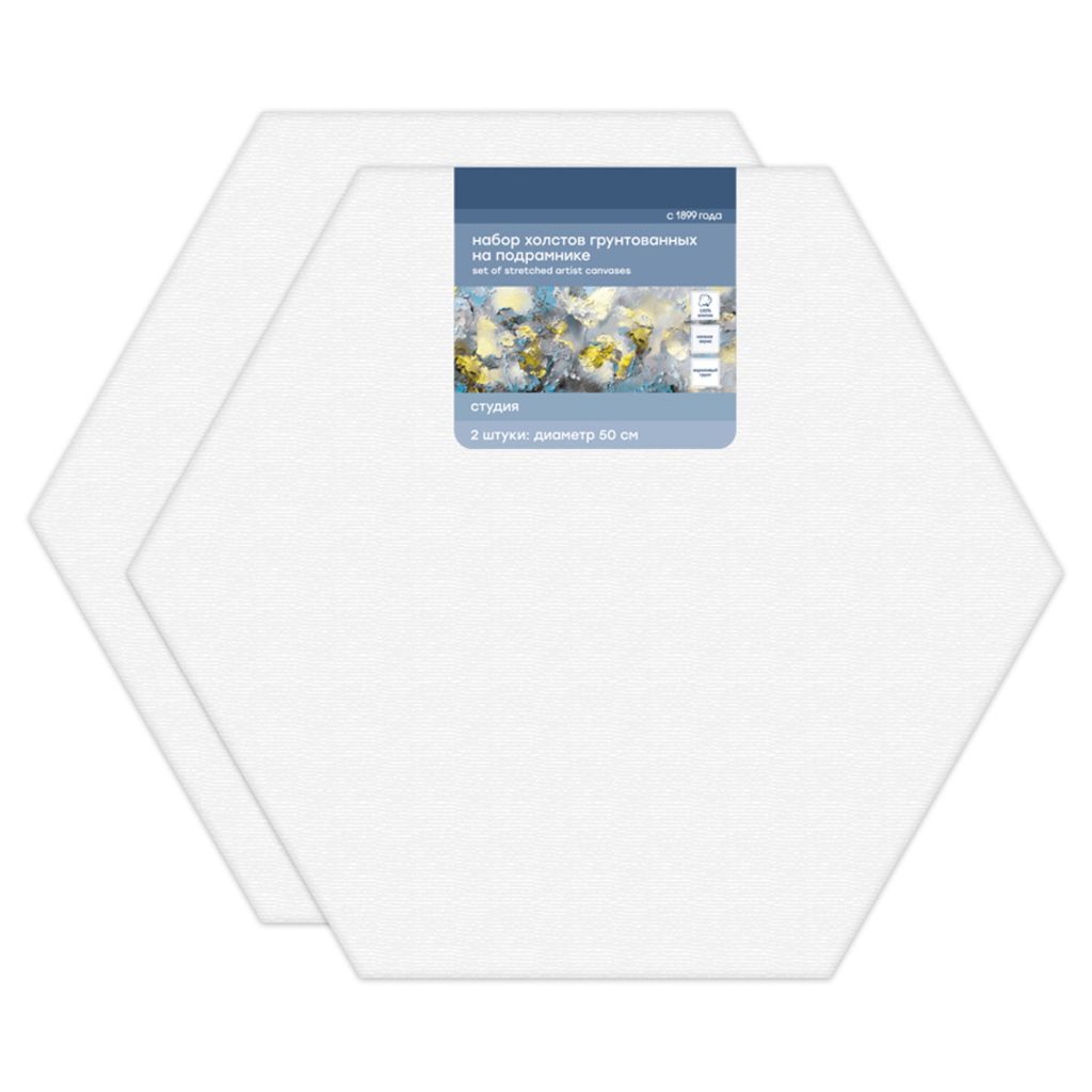 Набор холстов на шестигранном подрамнике «ГАММА» серии «Студия» выполнен из натурального полотна – 100% хлопок, мелкое зерно, акриловый грунт. В наборе 2 холста диаметром 50 см. Холст – идеальная основа для работы масляными, акриловыми и темперными красками. Холсты покрыты акриловым грунтом, а подрамники выполнены из сосны. Изделие идеально подойдет студентам художественных школ и училищ, начинающим и профессиональным художникам.
