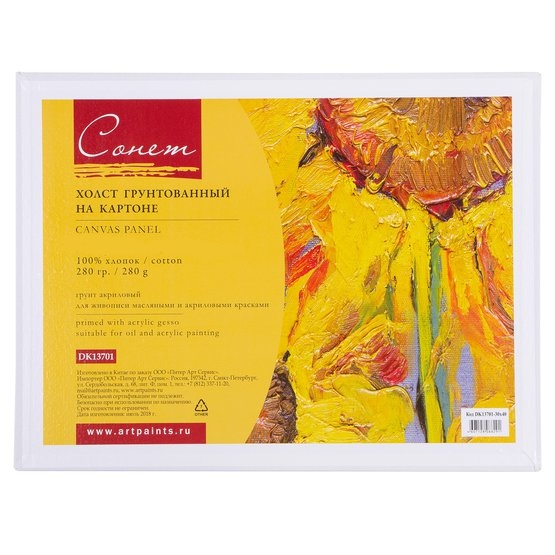 Холст на картоне "Сонет", 20х40 см, 280 г, 100% хлопок, мелкое зерно