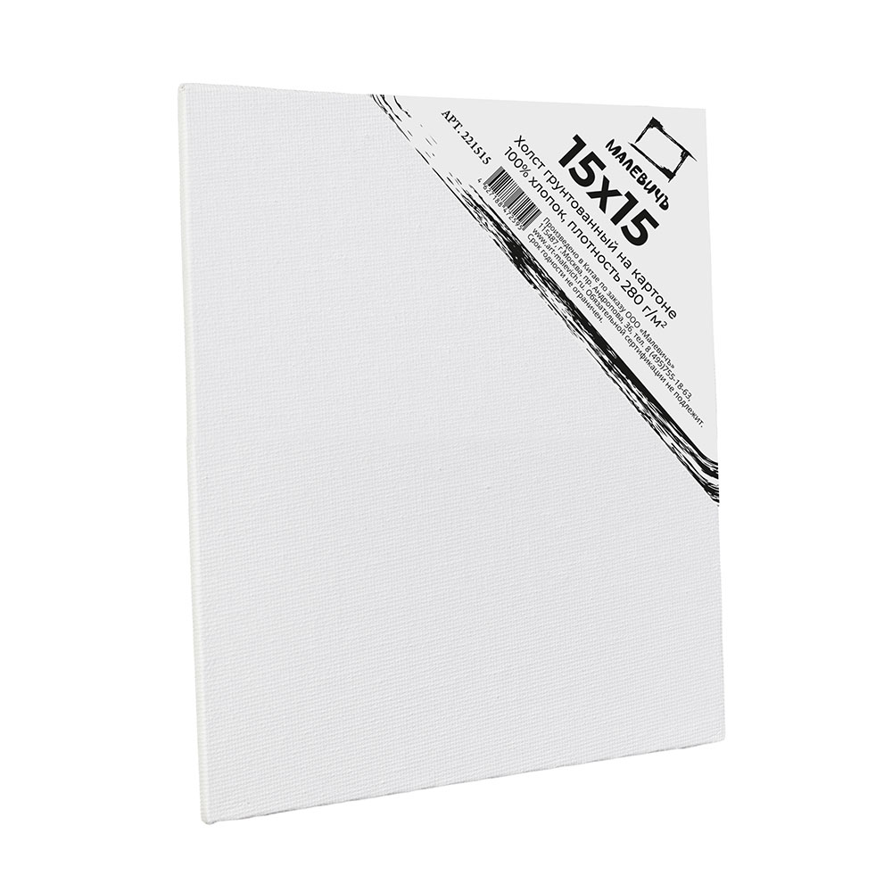 Полноценные холсты для профессиональной живописи. Представляют собой загрунтованное мелкозернистое полотно из 100% хлопка плотностью 280 г/кв. м, наклеенное на основу из прочного картона толщиной 3 мм. Такие холсты дешевле традиционных изделий на подрамнике, поэтому будут особенно интересны студентам, художникам-любителям и много пишущим мастерам-живописцам. Холсты на картоне Малевич: • изготовлены из плотного натурального полотна без узелков и неровностей; • профессионально натянуты и загрунтованы; • экономят время художника – к работе можно приступить сразу же; • дешевле и прочнее холстов на подрамнике; • удобны при транспортировке и хранении; • подходят для любого вида красок, кроме акварельных (для которых у нас есть Акварельные холсты); • можно оформить в готовую раму (картины на подрамнике придется отдавать в мастерскую). Холсты на картоне не занимают много места, надежно защищают живописный слой от повреждений, удобны при выездах на пленэр и на выставки.
