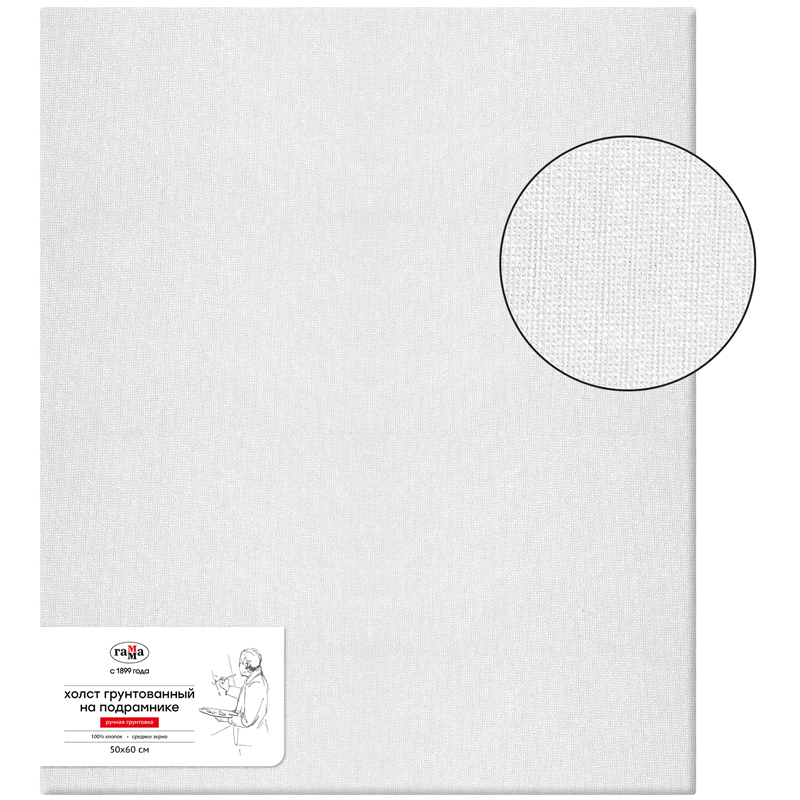 Холсты «ГАММА» с ручной грунтовкой натягиваются и грунтуются вручную. По традиционной технологии высококачественное 100% хлопковое полотно натягивают на сосновый подрамник с буртиком. Перед грунтовкой ткань проходит специальную обработку и проверку, для обеспечения ровной поверхности готового холста. Наши мастера сначала проклеивают каждый подрамник с натянутым полотном тремя слоями желатиновой проклейки и затем грунтуют тремя слоями масляно-эмульсионного грунта. Холсты прекрасно подходят для работ акриловыми и масляными красками. Массивный модульный подрамник, шириной 5 см, изготовлен из российской сосны, клинья для натяжки холста в комплекте. Холст упругий, не провисает после нанесения красок даже в несколько слоёв.