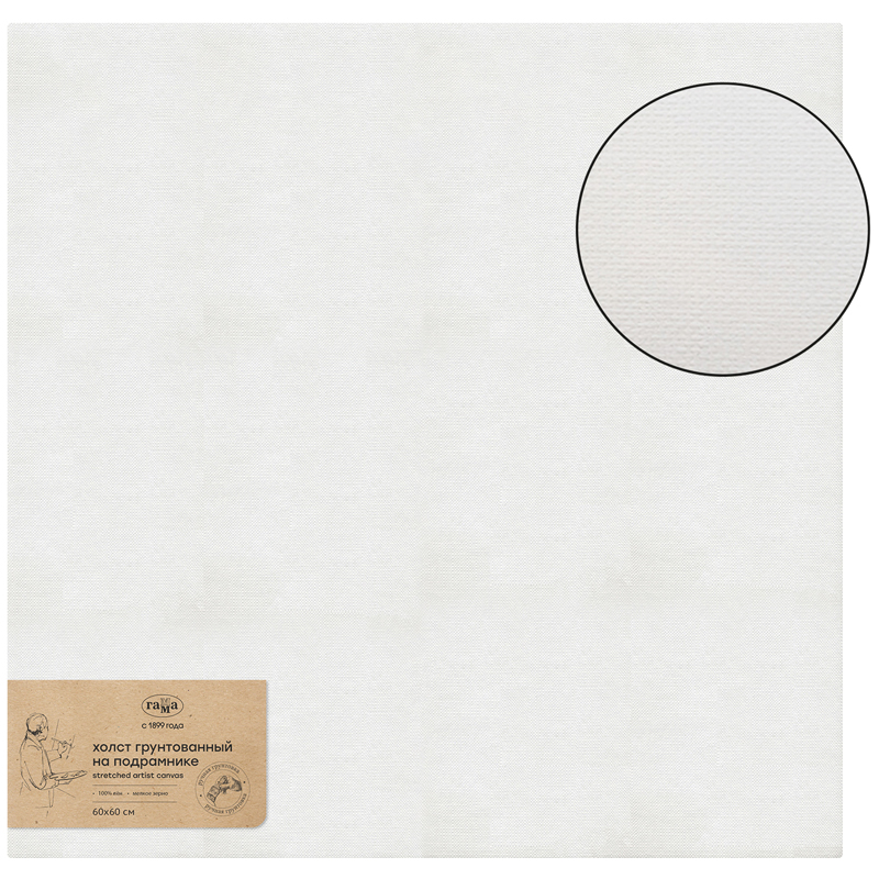 Холсты «ГАММА» с ручной грунтовкой натягиваются и грунтуются вручную. По традиционной технологии высококачественное 100% льняное полотно натягивают на сосновый подрамник с буртиком. Перед грунтовкой ткань проходит специальную обработку и проверку, для обеспечения ровной поверхности готового холста. Наши мастера сначала проклеивают каждый подрамник с натянутым полотном тремя слоями желатиновой проклейки и затем грунтуют тремя слоями масляно-эмульсионного грунта. Холсты прекрасно подходят для работ акриловыми и масляными красками. Массивный модульный подрамник, шириной 5 см, изготовлен из российской сосны, клинья для натяжки холста в комплекте. Холст упругий, не провисает после нанесения красок даже в несколько слоёв.