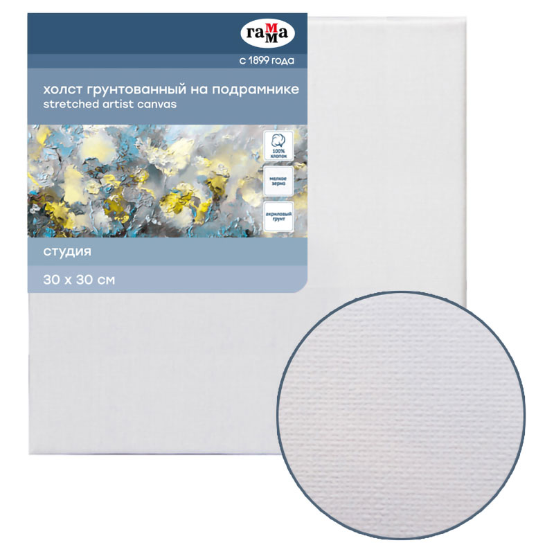 Холст изготовлен из хлопка, обладает мелкозернистой фактурой, что обеспечивает возможность прорисовки точных деталей в работе. Холст покрыт несколькими слоями акрилового слоя, что обеспечивает идеальную адгезию с красочным слоем и делает рабочую поверхность полностью готовой к работе. Холст предназначен для живописных работ акриловыми, масляными и темперными красками.
