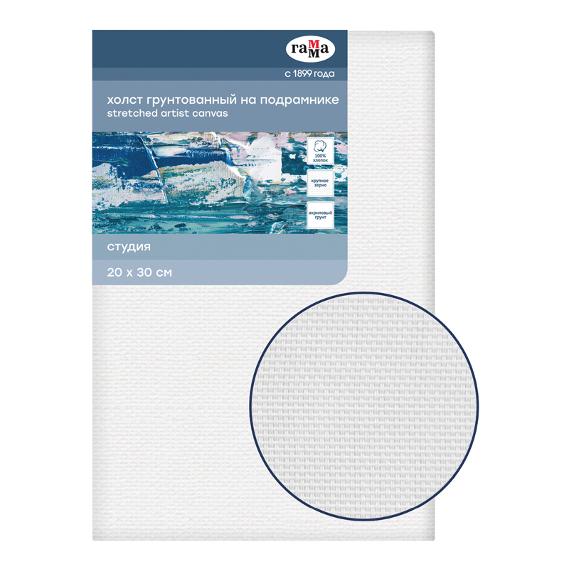 Холст из 100% хлопка с крупнозернистой фактурой подходит для живописи масляными, акриловыми и темперными красками. Трехслойный акриловый грунт сохраняет чистоту цветов и оттенков. Плотность 400 г?/?м? подходит для создания картин в пастозной технике и наложения красок в несколько слоёв. Подрамник из натуральной сосны, клинья для натяжения холста в наборе.