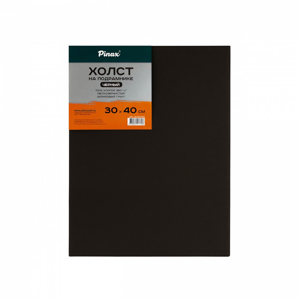 Холст на подрамнике Pinax. имеются холсты разного размера. 100% хлопок. Плотность 380 г/м2. Мелкозернистое полотно. Тройное покрытие чёрным акриловым грунтом. Хлопок - доступное решение для начинающих художников и любителей. Предназначены для масляной живописи, акрила, темперы и смешанных техник.