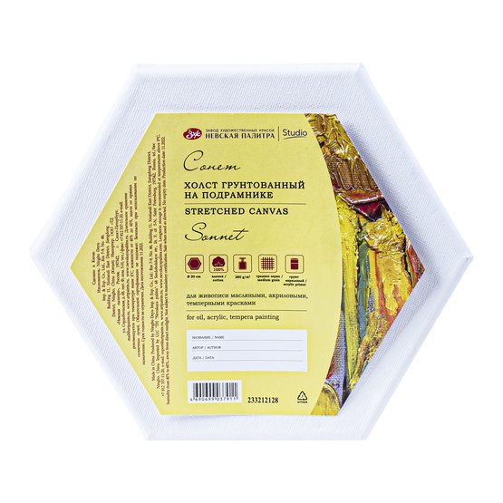 Холст на подрамнике "Сонет" необычной форму состоит из 100% хлопка плотностью 280 г/м2 и имеет 3 слоя акрилового грунта. Зерно холста - среднее. Холст на подрамнике используют для живописи масляными, акриловыми, темперными красками при создании пейзажей, натюрмортов, портретов нестандартных форм. Разнообразные формы холстов интересны также в смешанной технике, для декупажа и кракелюра, технике жидкого акрила («флюид арт»). Их часто используют при оформлении интерьера по несколько холстов одной или разных форм.
