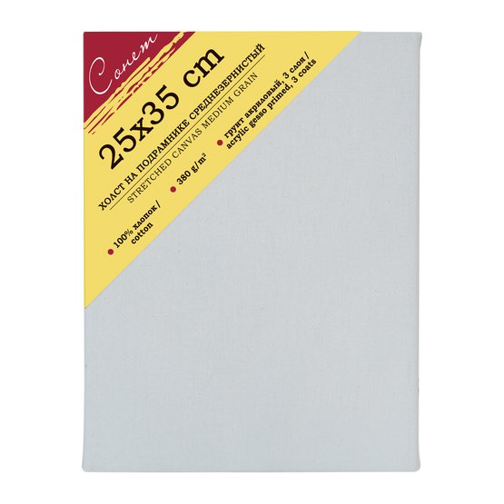Грунтованный холст на подрамнике используется для работы масляными, темперными и акриловыми красками. Предназначен для учеников и студентов художественных школ, художников. Характеристики: Изготовлен из 100% хлопка плотностью 380 г/м2. Хлопковое полотно характеризуется ровной поверхностью со слабовыраженным рельефом. Фактура позволяет писать в различных техниках, прорисовывать мелкие детали. Акриловый грунт позволяет сохранить цвета неизменными, не допуская их прожухания. Холст на подрамнике полностью готов к работе