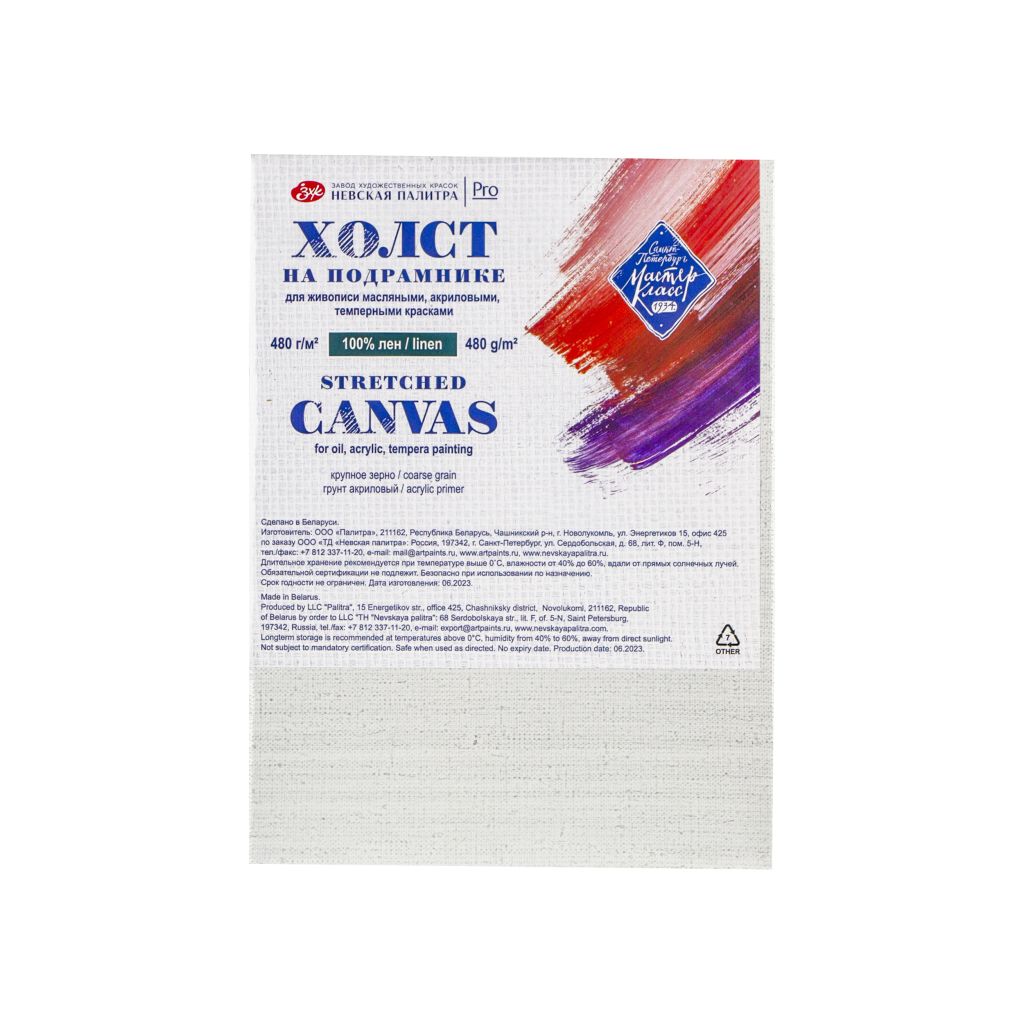Холсты изготовлены на бескислотной основе из 100% льна, имеют 3 слоя проклейки и 3 слоя акрилового грунта. Льняные ткани обладают прочностью и стойкостью к воздействиям влаги и температуры, что гарантирует долговечность изделия. Поэтому холсты из 100% льна относят к профессиональной серии материалов для живописи. Предназначены для работы масляными, акриловыми и темперными красками с использованием кисти, мастихина. На них можно выполнять эскизы карандашом. Фактура холста с крупным зерном идеальна для пастозной техники, написания крупных элементов. Поверхность холста хорошо натянута на подрамник и очень упругая, не провисает под большим слоем краски. Если необходимо улучшить натяжку холста, это легко сделать с помощью клиньев в комплекте (начиная с размера 30х30 см). Подрамники изготовлены из сосны. Размер сечения разный в зависимости от габаритов холста.