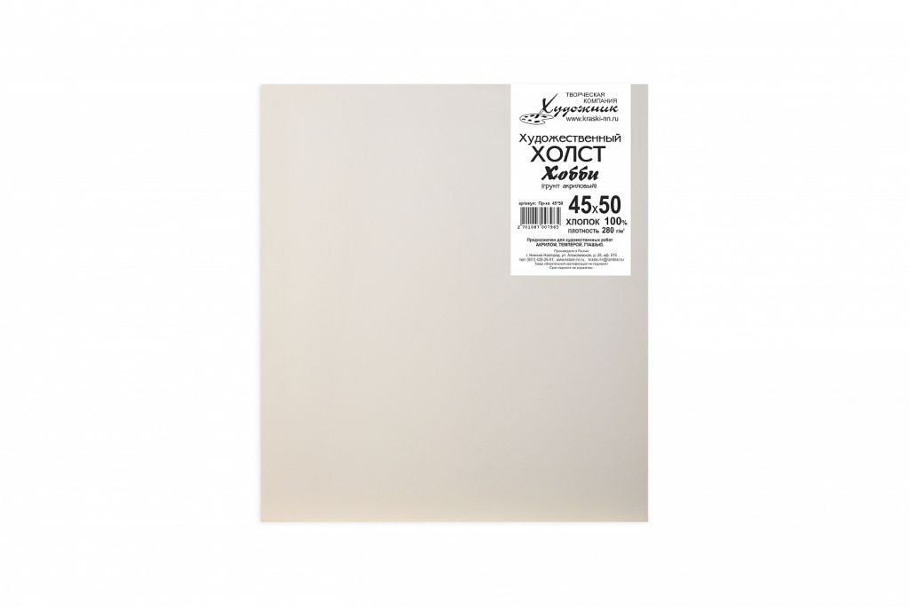 Данный холст относится к бюджетной линейке «Хобби», так как имеет облегченный подрамник шириной 30 мм. и среднюю степень натяжки холста. Используется для живописных работ акрилом темперой, гуашью. Относится к мелкозернистым. Имеет ровное плетение и гладкую фактуру, что позволяет прорабатывать мелкие детали. Торец холста -грунтованный. Натяжка холста музейная — скобы с задней стороны подрамника.