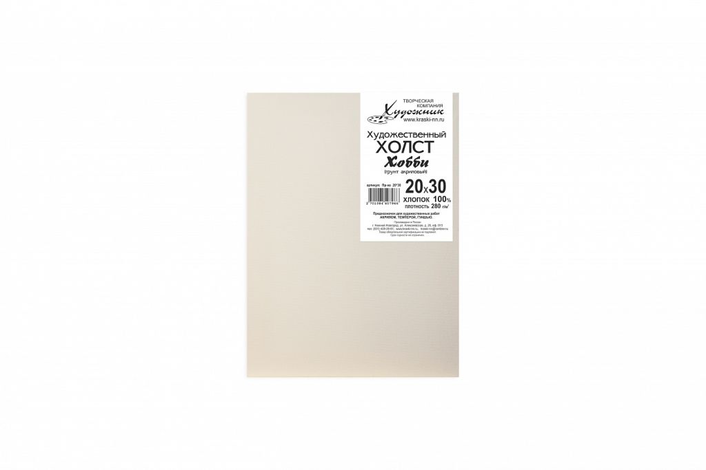 Данный холст относится к бюджетной линейке «Хобби», так как имеет облегченный подрамник шириной 30 мм. и среднюю степень натяжки холста. Используется для живописных работ акрилом темперой, гуашью. Относится к мелкозернистым. Имеет ровное плетение и гладкую фактуру, что позволяет прорабатывать мелкие детали. Торец холста -грунтованный. Натяжка холста музейная — скобы с задней стороны подрамника.