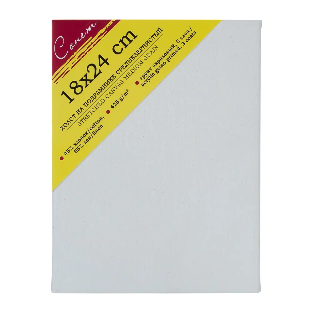 Холст на подрамнике грунтованный "Сонет" 18х24 см, 425 г, 45% хлопок 55% лён, среднее зерно