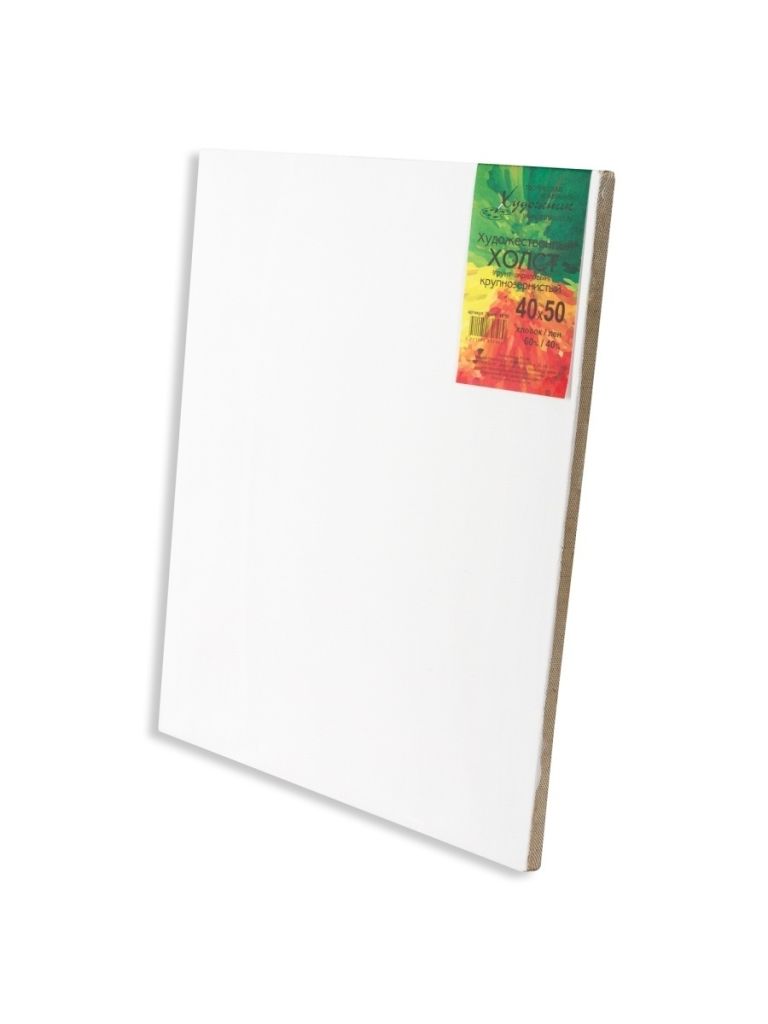 Смесовой холст крупнозернистой фактуры покрыт акриловым грунтом, предназначен для работы масляными и акриловыми красками. Состав такни: 40% лён и 60% хлопок. Оптимальное соотношение цена/качество ткани. Лён придает прочность холсту, хлопок имеет ровное плетение нитей и гладкую фактуру, что позволяет прорисовывать мелкие детали, создавать сложные цветовые переходы. При натяжке скобы располагаются с оборотной стороны подрамника. Холсты бренда «Художник» снабжены комплектом клиньев, которые позволяют регулировать натяжение полотна и крепежом для готовой работы (кольца, шурупы, шнур).