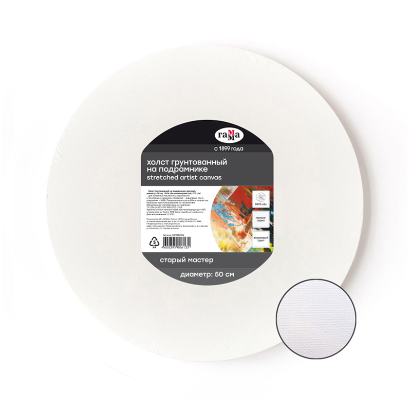 Холст круглой формы для профессиональных работ из 100% льна высокого качества. Идеальная основа для работы масляными, акриловыми и темперными красками. Трехслойный акриловый грунт сохраняет чистоту цветов и оттенков. Плотность 370 г?/?м? подходит для письма, лессировки, портретов и эскизов. Подрамник из МДФ с буртиком. Серия представлена холстами разного диаметра.