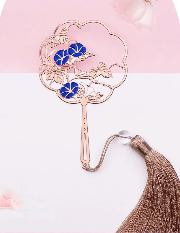 Образ цветущего вьюнка в китайской культуре ассоциируется с чувством привязанности и любовью. Закладка для книг «Вьюнок» может стать прекрасным креативным подарком в классическом китайском стиле для человека, который вам не безразличен. Изделие выполнено из металла с гальваническим покрытием, декорировано ювелирной эмалью глубокого синего цвета и украшено кистью из золотистых нейлоновых нитей.