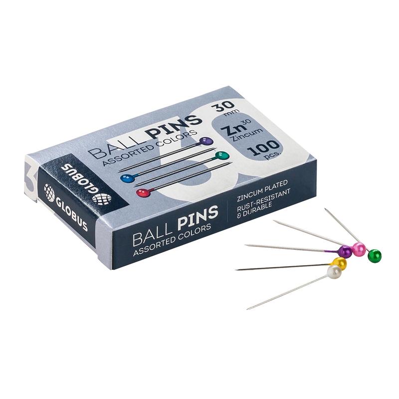 Булавки с пластиковым держателем. Цвет держателя — разноцветный. Длина — 30 мм. Рабочая поверхность булавки изготовлена из стали. Поставляются по 100 штук в картонной упаковке. Булавки используются для крепления информации к доскам пробкового типа, для планирования и отметок.