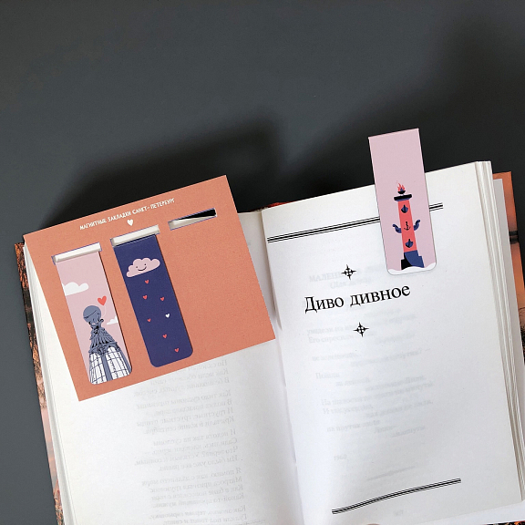 Магнитная закладка поможет запомнить и быстро найти нужную страницу книги. Полностью магнитное основание позволит крепко зафиксировать закладку в нужном месте. В наборе 3 закладки с иллюстрациями по мотивам достопримечательностей Санкт-Петербурга.