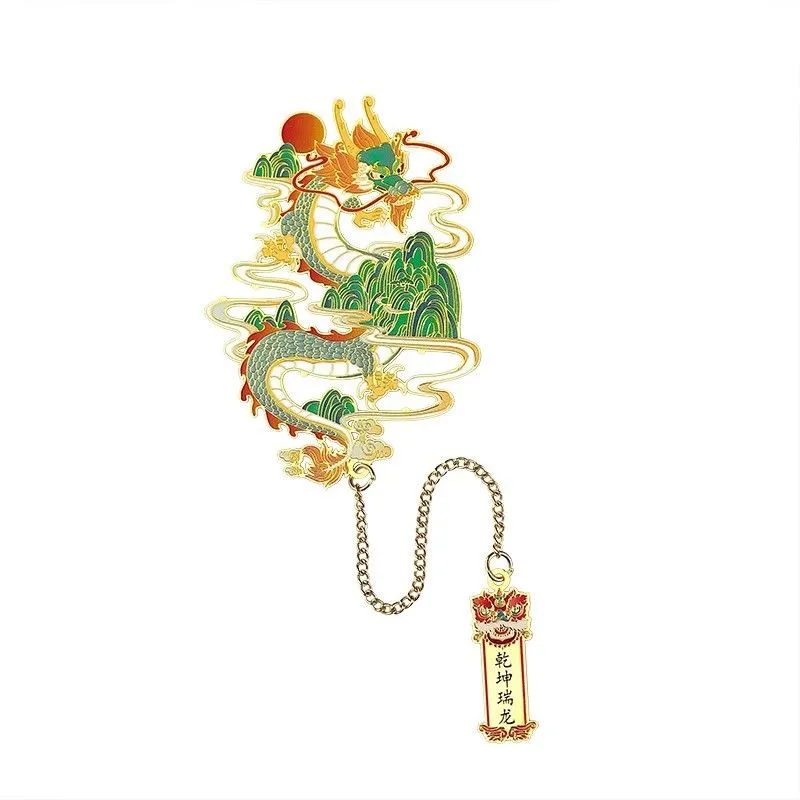 Лазурный дракон – является главным символом и могущественным покровителем Востока. В китайской культуре считается, что образ дракона приносит удачу, счастье и процветание. Закладка для книг «Дракон счастья Инь и Ян» изготовлена из высококачественной латуни по технологии ювелирной лазерной резки, покрыта красочной эмалью и декорирована оригинальной подвеской. Надписи на подвеске гласят: лицевая сторона «Дракон счастья», на обороте «Время читать».