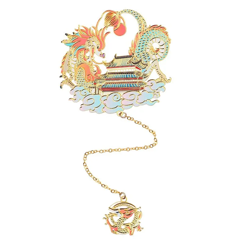 Лазурный дракон Цин-лун – является главным символом и могущественным покровителем Востока. В китайской культуре считается, что образ дракона приносит удачу, счастье и процветание. Закладка для книг «Небесный дракон» изготовлена из высококачественной латуни по технологии ювелирной лазерной резки, покрыта красочной эмалью и декорирована оригинальной подвеской.