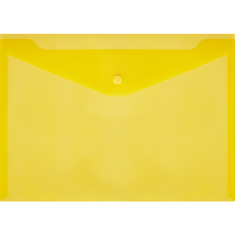 Папка-конверт формата А4 изготовлена из прозрачного пластика толщиной 0,18 мм желтого цвета. Закрывается на кнопку. Удобна для хранения и переноски документов, предотвращает их смятие и загрязнение. Вмещает до 120 листов стандартной плотности.