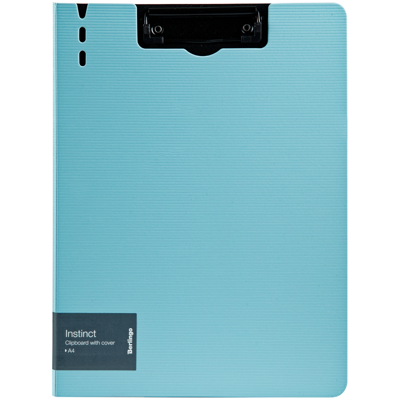 Папка-планшет с зажимом Berlingo серии Instinct размером 320*225 мм изготовлена из плотного пластика (полифом) толщиной 1,8 мм. Вместимость папки – 100 листов, ширина корешка – 10 мм. Насыщенный пастельный голубой цвет внешней стороны в сочетании с фактурой "горизонтальные линии", черный цвет внутренней поверхности с прижимом. Металлический зажим для фиксации документов. Вырубки на крышке позволяют легко закрепить ручку на папке. Позволяет делать записи на весу.