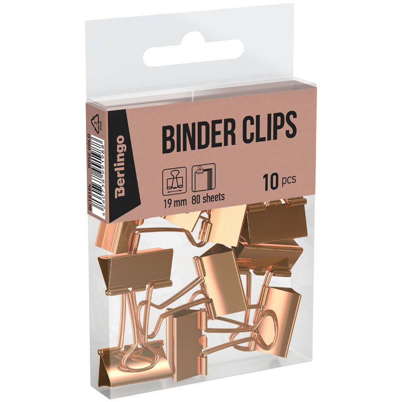 Канцелярские зажимы для бумаг Berlingo выполнены цвете розовое золото. Изделия для бумаг шириной 19 мм надёжно скрепляют, не деформируют и не оставляют следов на бумаге. Зажимы Berlingo могут скрепить до 80 листов. Упаковка – ПВХ-коробка по 10 штук. • Количество: 10 штук; • Ширина: 19 мм;