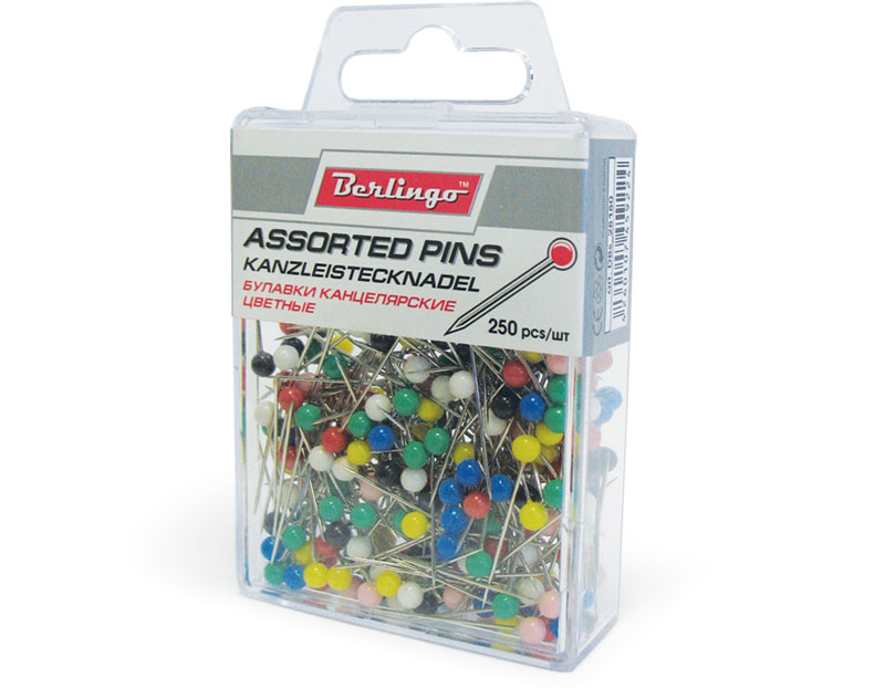 Булавки канцелярские с цветными головками предназначены для крепления информации к пробковым доскам. Длина булавки - 28 мм. Упаковка в пластиковую коробочку с европодвесом - по 250 шт.