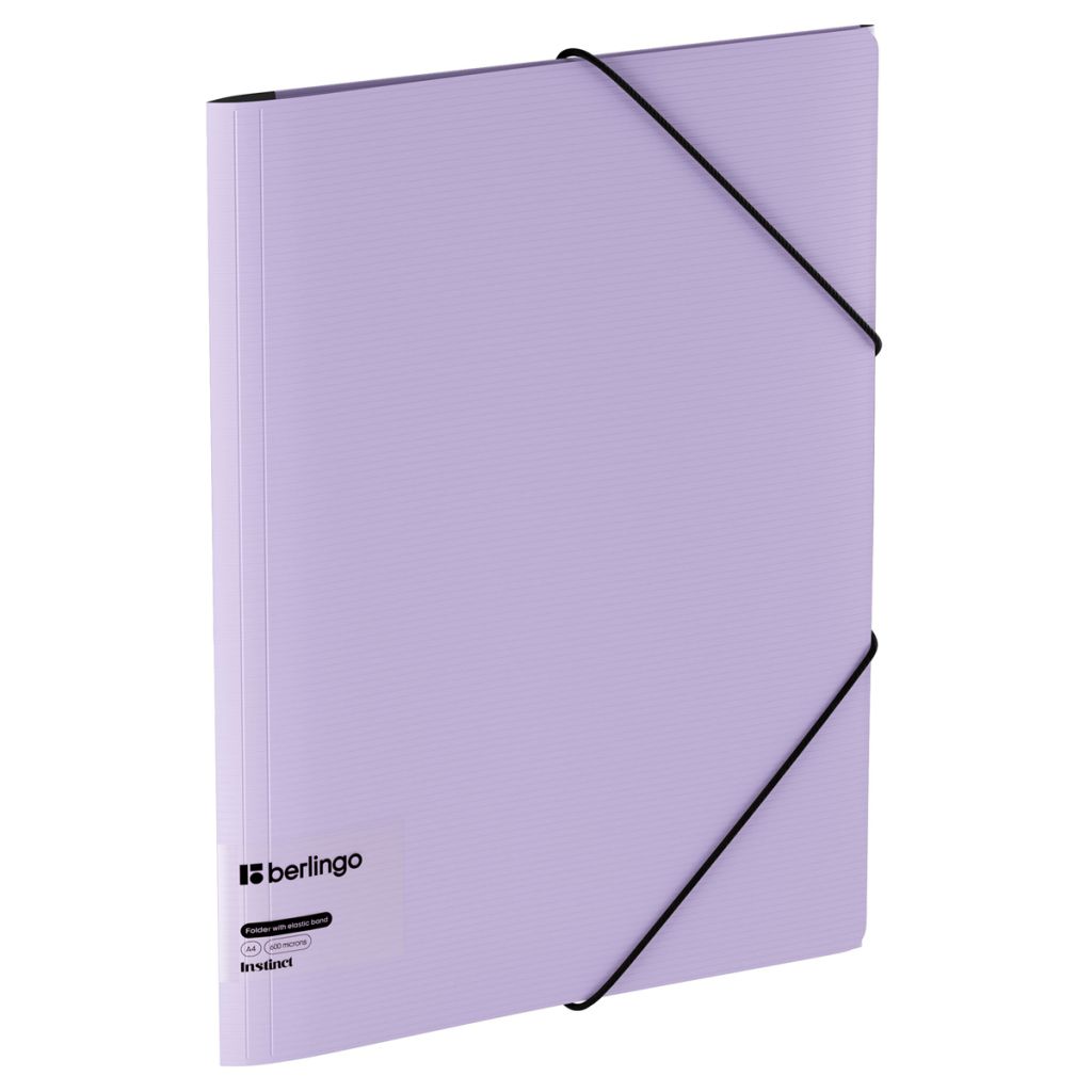 Папка пластиковая на резинках Berlingo Instinct формата А4 поможет в транспортировке и хранении документов. Размер папки – 320*246 мм. Она вмещает до 300 листов. Папка изготовлена из высококачественного полипропилена толщиной 600 мкм с текстурой «горизонтальные линии». Внешняя сторона папки выполнена в нежном лавандовом цвете, внутренняя имеет чёрный цвет. Надёжные застёжки-резинки помогают избежать повреждения документов и легко открываются.