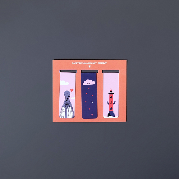 Магнитная закладка поможет запомнить и быстро найти нужную страницу книги. Полностью магнитное основание позволит крепко зафиксировать закладку в нужном месте. В наборе 3 закладки с иллюстрациями по мотивам достопримечательностей Санкт-Петербурга.