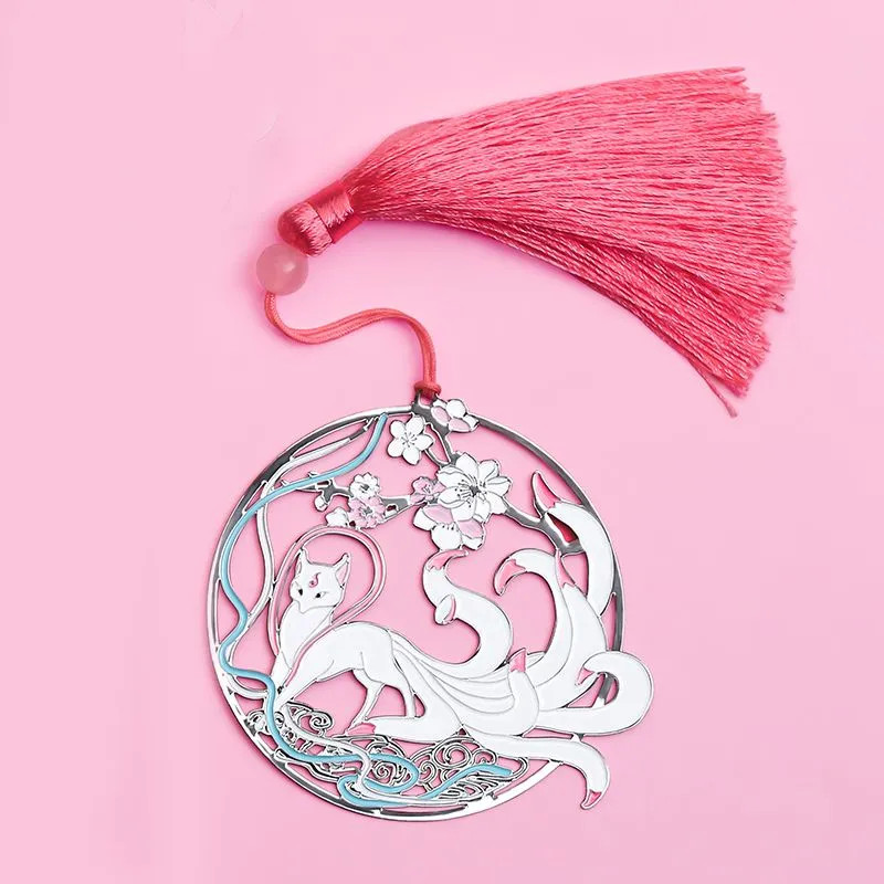 Девятихвостая лисица-оборотень — существо китайской мифологии, наделенное магическими способностями. Согласно легенде, хвост лисы собирает духовную энергию наделяя лисицу магическими силами. Закладка для книг «Мифическая девятихвостая лисица» выполнена из нержавеющей стали по технологии ювелирной лазерной резки, покрыта красочной эмалью и декорировано изящной подвеской в виде кисти.