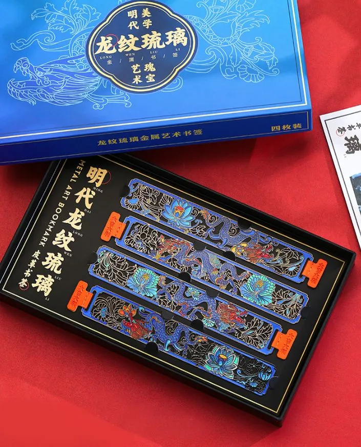 Легендарные изображения росписей драконов эпохи Мин с ювелирной точность переданы в металле в подарочном наборе с закладками для книг «Драконы эпохи Мин». Вся грация этих мифических существ оживает в ваших руках, ведь изделия выполнены по технологии ювелирной лазерной резки по металлу и декорированы яркими элементами разноцветной эмали. Ни одно из изображений драконов не повторяется и несет в себе потаенные смыслы китайской культуры. Набор с закладками укомплектован в оригинальную подарочную упаковку.