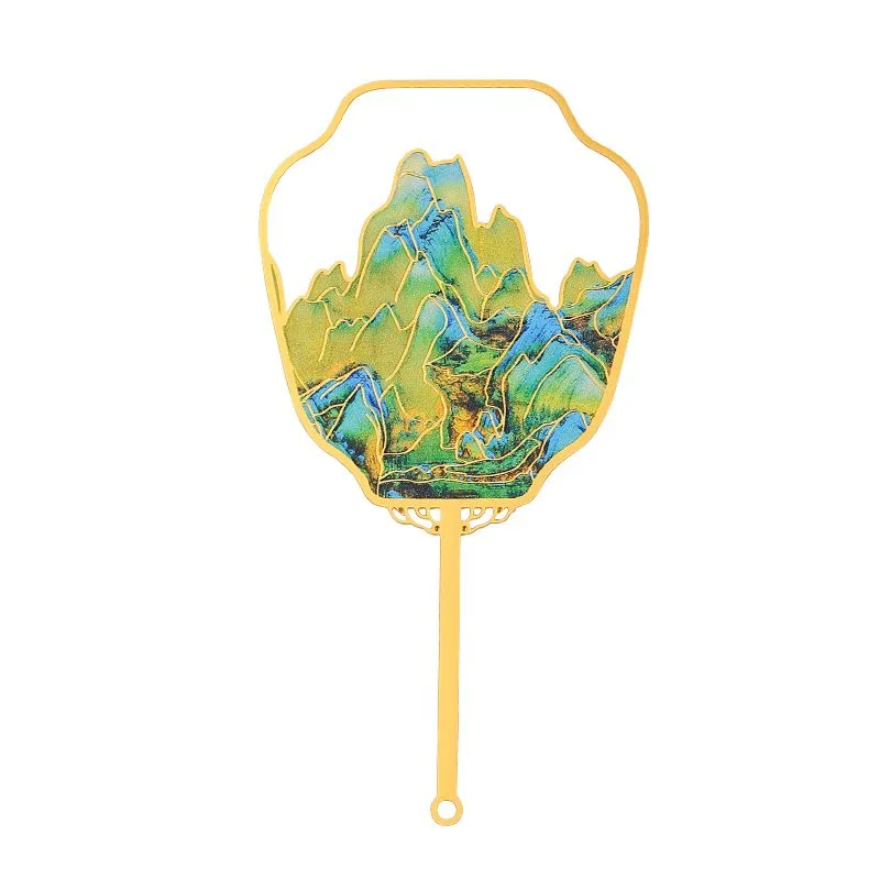 Традиционные пейзажные композиции с изображением гор очень популярны в Китае. Горные пики и реки — это своего рода сакральные элементы, символизирующие мужское и женское начало. В китайской культуре образы гор также часто ассоциируются с близостью к небожителям и благосостоянием. Закладка для книг «Горы и воды на тысячу ли», напоминающая по форме традиционный китайский веер, выполнена из высококачественной латуни по технологии ювелирной лазерной резки, покрыта красочной эмалью и декорирована изящной кисточкой.
