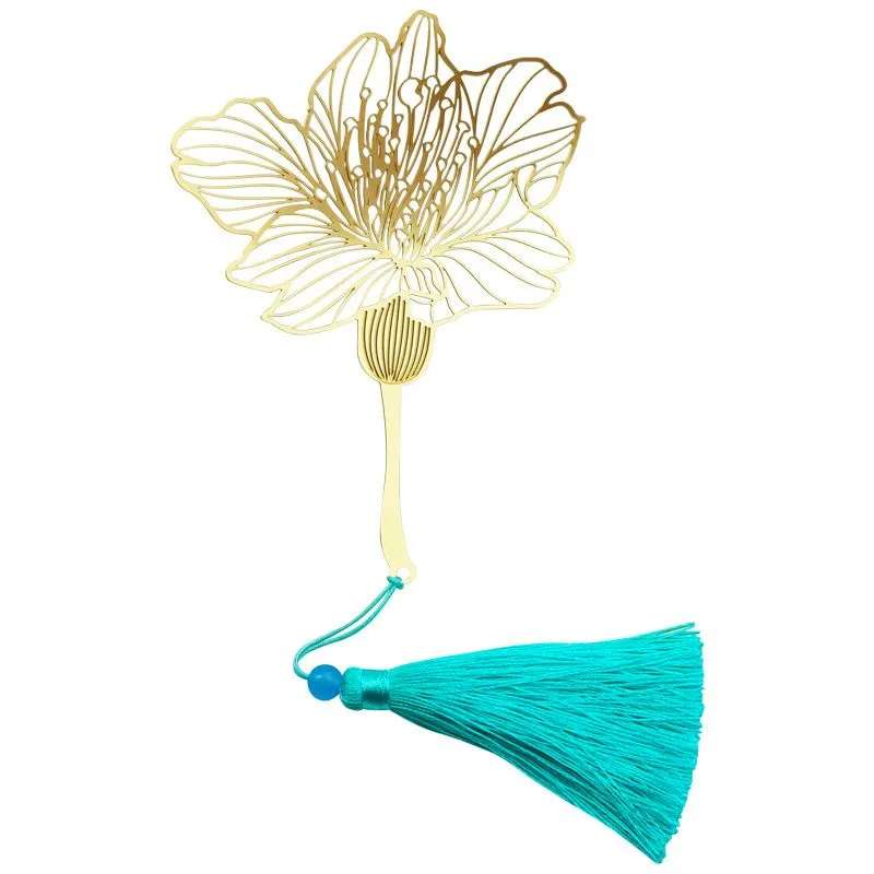 Кампсис — это удивительная цветущая лиана, часто встречающаяся на территории восточного Китая. Закладка для книг «Кампсис великолепный» выполнена из высококачественной латуни по технологии ювелирной лазерной резки. Закладка декорирована плотно свитой кистью из сияющих нейлоновых нитей.