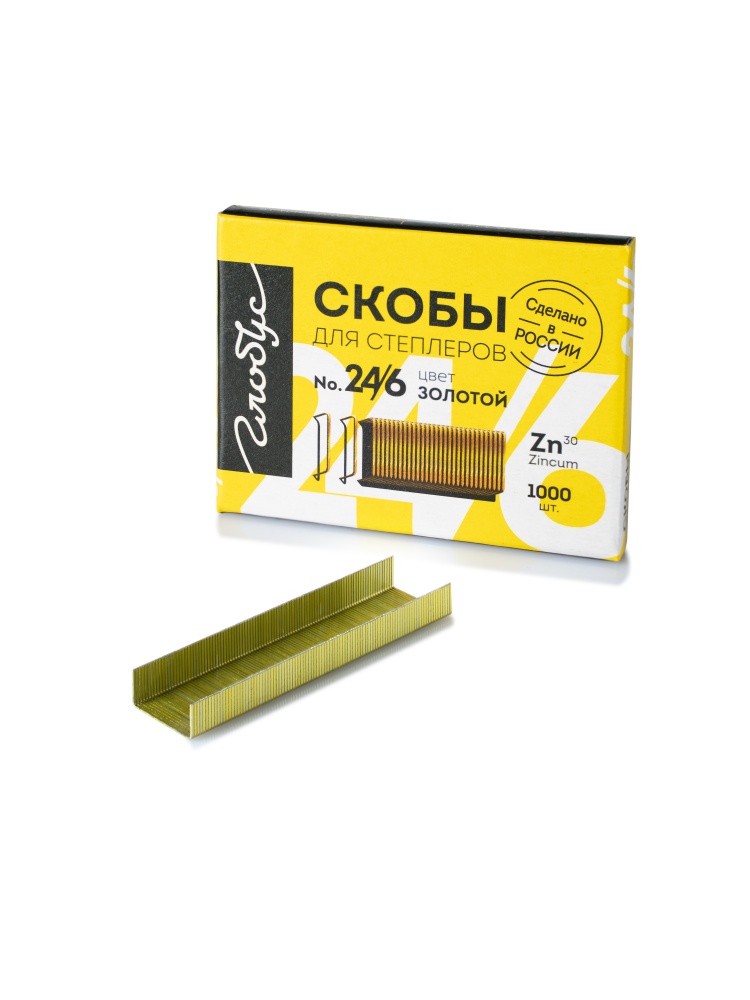 Скобы для степлера № 24/6 выполнены из качественного металла с полимерным золотым покрытием. Предназначены для степлеров со сшивающей способностью до 25 листов (для бумаги толщиной 0,07 и 0,08 мм).