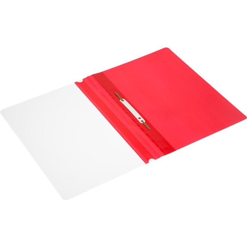 Папка-скоросшиватель Attache Economy А4 формата, с прозрачным верхним листом, красного цвета. Для бережного хранения перфорированных документов А4. Изготовлена из пластика плотностью 110 мкм. Усиленный пластиковый корешок с белой полосой для размещения информации.