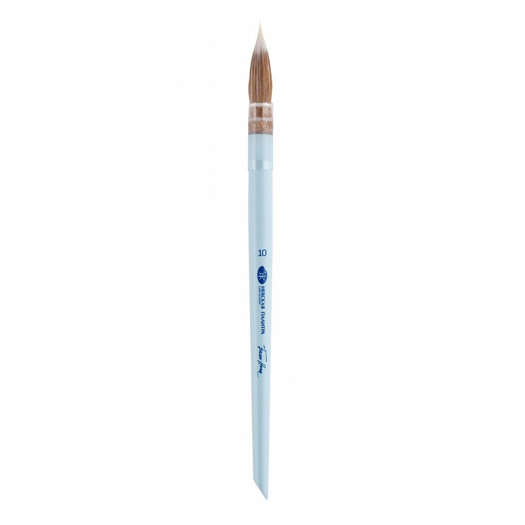 Ворс кисти выполнен из японской синтетики нового поколения и натурального ворса колонка. Кисть с таким составом обладает рядом преимуществ - ворс упругий и мягкий одновременно, превосходно держит острый кончик, долго удерживает воду и краску, более долговечен в использовании. Кисть легкая, приятно лежит в руке. Ворс надежно закреплен в пленочную обойму, перевязан и проклеен. Ручка кисти имеет скошенный кончик - может применяться для создания дополнительных эффектов в работе, а также для разделения листов в альбомах-склейках. Кисти выпущены лимитированной серией в размерах №4, 6, 8, 10.