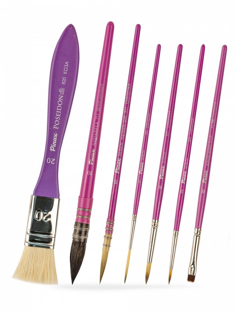 О наборе: в серии наборов Pinax Masters Choice тщательно подобраны кисти из разных серий на основе опыта профессиональных художников — одного набора будет достаточно, чтобы получить максимальный охват потребностей различных форм и размеров кистей. Применение: в наборе представлены кисти разных серий от бренда Pinax предназначенных для работы акварелью и другими красками на водной основе. Производство: данный товар представлен брендом Pinax. Pinax — мировой бренд товаров, который представлен на российском рынке с начала XXI века. Изначально компания производила только кисти для художественных работ, но затем расширила свое производство и не потеряв качество своей продукции начала производить холсты, мольберты и аксессуары для художников. Сейчас ассортимент включает в себя большое количество наименований.