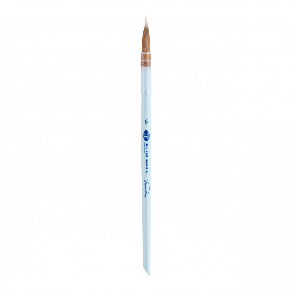 Ворс кисти выполнен из японской синтетики нового поколения и натурального ворса колонка. Кисть с таким составом обладает рядом преимуществ - ворс упругий и мягкий одновременно, превосходно держит острый кончик, долго удерживает воду и краску, более долговечен в использовании. Кисть легкая, приятно лежит в руке. Ворс надежно закреплен в пленочную обойму, перевязан и проклеен. Ручка кисти имеет скошенный кончик - может применяться для создания дополнительных эффектов в работе, а также для разделения листов в альбомах-склейках. Кисти выпущены лимитированной серией в размерах №4, 6, 8, 10.