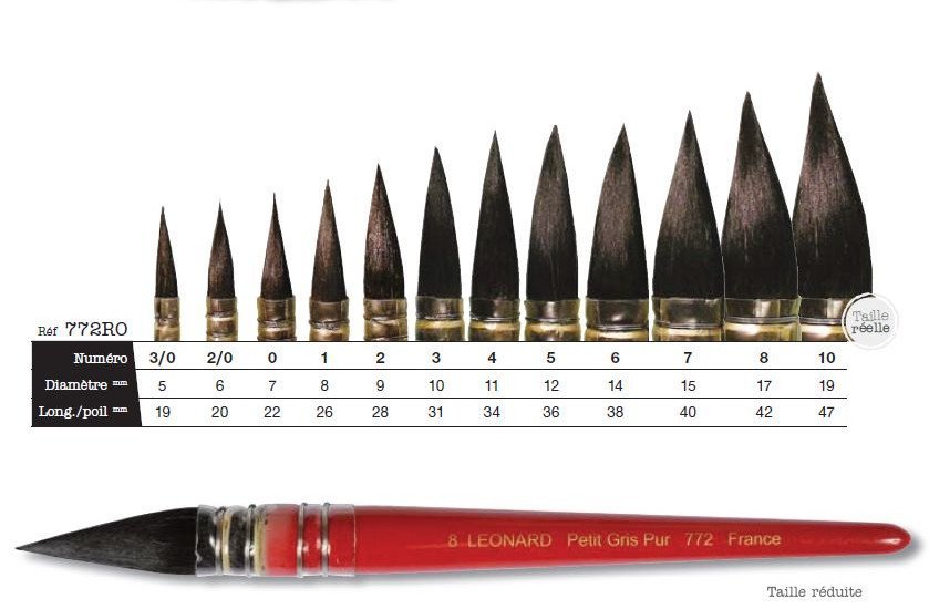О серии: серия "772RO" представлена профессиональными кистями ручной работы. Пучок круглой формы произведен из высококачественного беличьего ворса, кончик максимально заострён. Все кисти выполнены на деревянной короткой ручке, рабочая часть зафиксирована французским типом крепления. Обратите внимание, кисти могут поставляться как с красной, так и с чёрной ручкой. Характеристика: синтетика используемая при производстве кистей данной серии обладает оптимальными качествами мягкости и упругости. Ворс отлично держит и отдаёт воду, благодаря чему кисти идеально подходят для работы акварельными красками. Применение: линейка подходит для работы акварельными и другими красками на водной основе. На усмотрение художника могут быть использованы с другими художественными материалами. Производство: произведено во Франции брендом Leonard с более чем двухвековой историей. Сегодня кисти Leonard известны и популярны среди художников во всём мире, ведь для их производства используются только высококачественные материалы и технология изготовления проверенная временем.