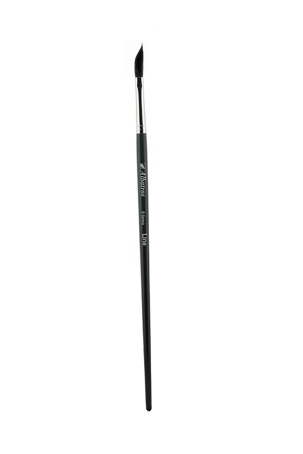 О серии: кисти серии "Line" изготовлены из натурального ворса. Данная линейка представлена кистями трёх размеров №8, №10 и №12. Характеристика: для изготовления кисти использован тщательно подобранный ворс белки высокого качества. Пучок кисти имеет саблевидную форму, надежно закреплен цельнотянутой обоймой. Ручка кистей длинная, покрыта серой эмалью. Применение: кисти серии "Line" используются в акварельной живописи для деталей различной формы. Производство: изготавливается компанией «Альбатрос», которая начала свою деятельность в 1989 году в городе Новосибирск. Компания хорошо зарекомендовала себя на рынке художественных товаром. Она постоянно работает над расширением своего ассортимента. Сегодня «Альбатрос» выпускает художественные кисти, холсты, ящики для красок и различные аксессуары для художников.