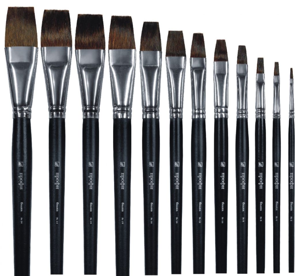 О серии: серия кистей «Профи» представлена художественными кистями из различного ворса (белка, колонок, синтетика, щетина). Все кисти выпускаются поштучно и представлены широким размерным рядом. Характеристика: данные кисти производятся из натурального ворса белки. Каждая такая ворсинка имеет заостренный кончик, что обеспечивает равномерное стекание краски на поверхность работы. Кисти из этого материала достаточно упругие и эластичные. Пучок у кистей плоской формы. Номер кисти соответствует ширине пучка (в миллиметрах). Ворс кисти надежно крепится к черенку цельнотянутой обоймой. Ручки кистей удлиненные, покрыты черной эмалью. Применение: кисти из такого материала используются для работы акварельными и масляными красками. На усмотрение художника возможно использование кистей при работе с другими художественными материалами. Производство: изготавливается компанией «Альбатрос», которая начала свою деятельность в 1989 году в городе Новосибирск. Компания хорошо зарекомендовала себя на рынке художественных товаром. Она постоянно работает над расширением своего ассортимента. Сегодня «Альбатрос» выпускает художественные кисти, холсты, ящики для красок и различные аксессуары для художников.