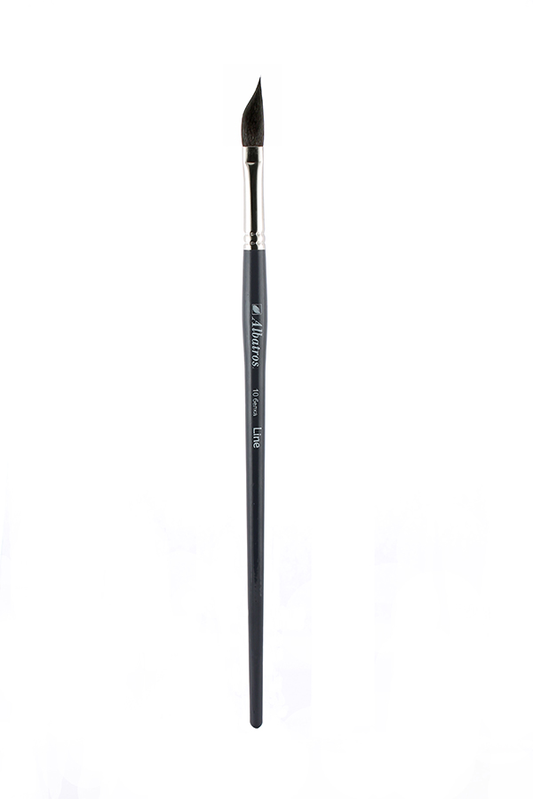 О серии: кисти серии "Line" изготовлены из натурального ворса. Данная линейка представлена кистями трёх размеров №8, №10 и №12. Характеристика: для изготовления кисти использован тщательно подобранный ворс белки высокого качества. Пучок кисти имеет саблевидную форму, надежно закреплен цельнотянутой обоймой. Ручка кистей длинная, покрыта серой эмалью. Применение: кисти серии "Line" используются в акварельной живописи для деталей различной формы. Производство: изготавливается компанией «Альбатрос», которая начала свою деятельность в 1989 году в городе Новосибирск. Компания хорошо зарекомендовала себя на рынке художественных товаром. Она постоянно работает над расширением своего ассортимента. Сегодня «Альбатрос» выпускает художественные кисти, холсты, ящики для красок и различные аксессуары для художников.