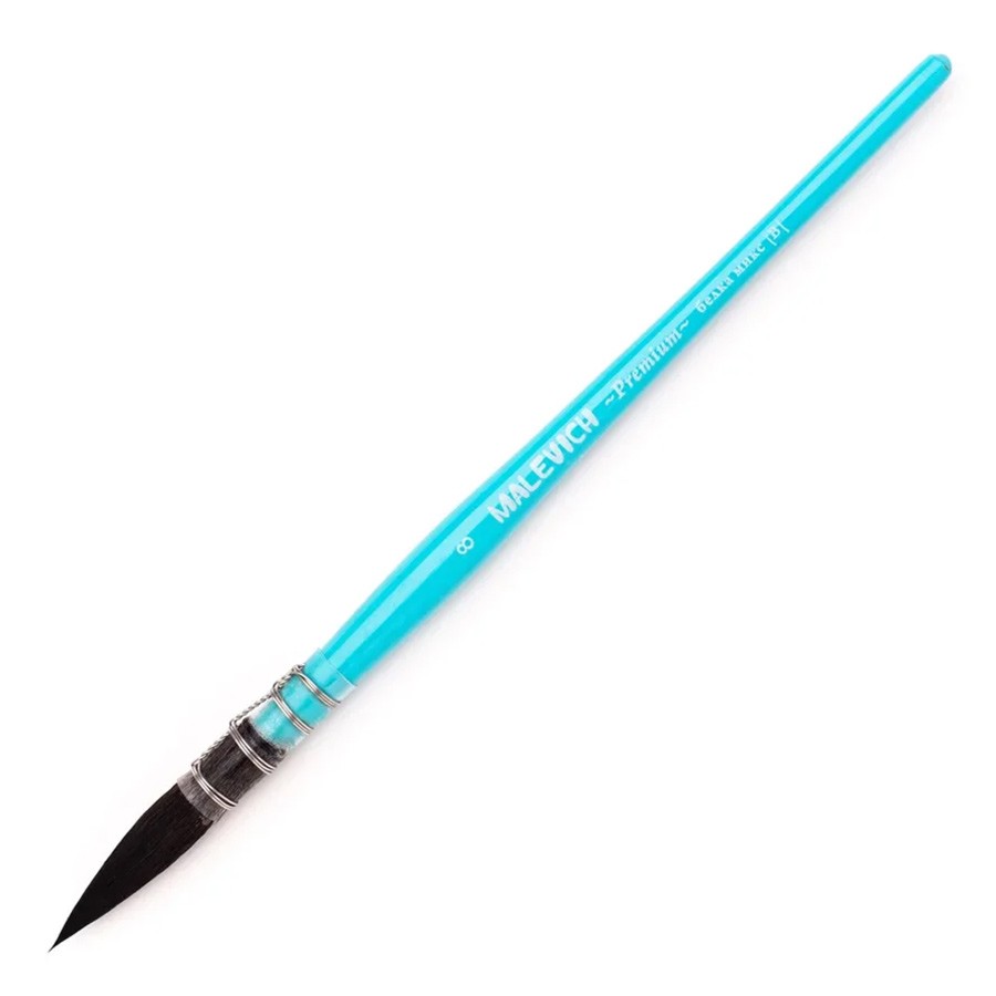 Серия кистей "Premium" от Малевичъ предназначена для профессиональной работы акварелью, каллиграфии и китайской живописи. Микс натурального беличьего ворса и специальной мягкой синтетики позволяет получить управляемую кисть, которая держит много воды и краски. Тонкий кончик позволяет прорабатывать мелкие детали, а большой объем пучка удобен для заливок. Французский тип крепления пучка, ручная скрутка. Лакированная березовая ручка длиной 15 см. лазурного цвета.