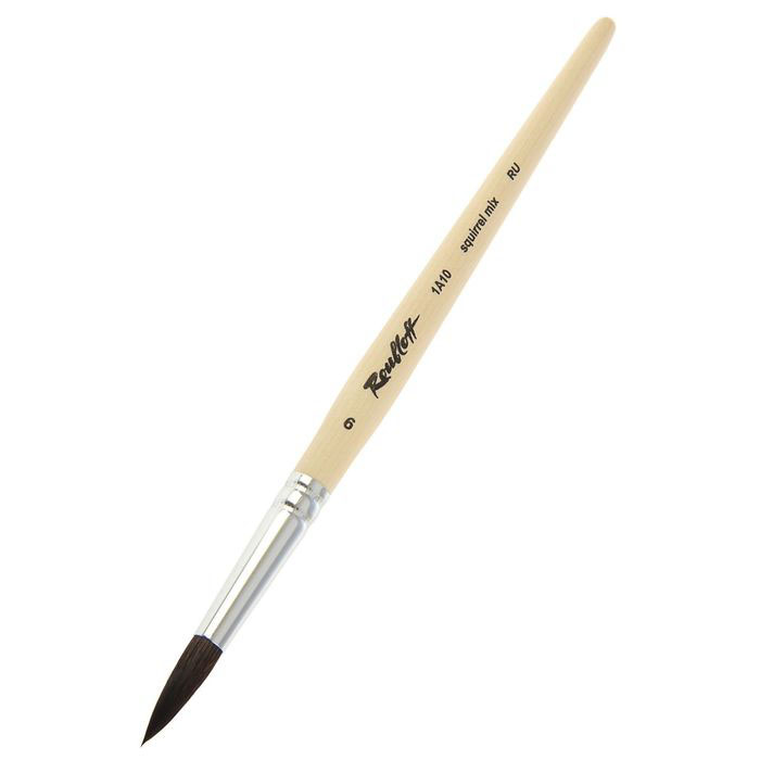 О серии: кисти серии «1А10» изготовлены из ворса белки с добавление ворса других видов. Серия представлена кистями круглой формы. Серийно выпускаются кисти следующих размеров: 0, 1, 2, 3, 4, 5, 6, 7, 8, 9, 10, 11, 12. Характеристика: для изготовления кистей используется специально подобранный ворс. Пучок кисти имеет заострённую круглую форма. Кисти, выполненные из такого материала, служат дольше чем кисти, изготовленные только из ворса белки. Кисти выполнены на короткой пропитанной лаком ручке. Крепление пучка к древку выполнено хромированной медной обоймой с двойным обжимом. Применение: кисти этой серии в основном используются для работ акварелью и гуашью. На усмотрение художника возможно использование кистей в других техниках живописи. Производство: изготавливаются под брендом Roubloff, который был основан в 1988 году в Кировской области (Россия). Кировская область – один из центров народных промыслов в России. Здесь же занимаются разведением пушных зверей, чей мех является идеальным материалом для кистей. Продукция бренда Roubloff – кисти самого разного назначения, размера и формы. Весь материл, используемый при производстве продукции, проходит отбор, чтобы каждый клиент получил лучшие кисти для своих работ. Кисти марки Roubloff являются одними из лучших в России.